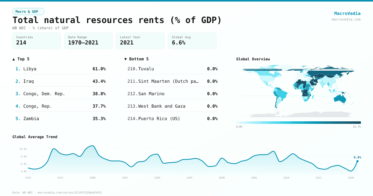 Macro & GDPWB WDIwb_wdi:NY.GDP.TOTL.RT.ZS•% (share) of GDP•1970 → 2021•214 countries