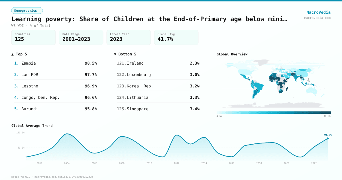 Learning poverty: Share of Children at the End-of-Primary age below minimum reading proficiency adjusted by Out-of-School Children (%)