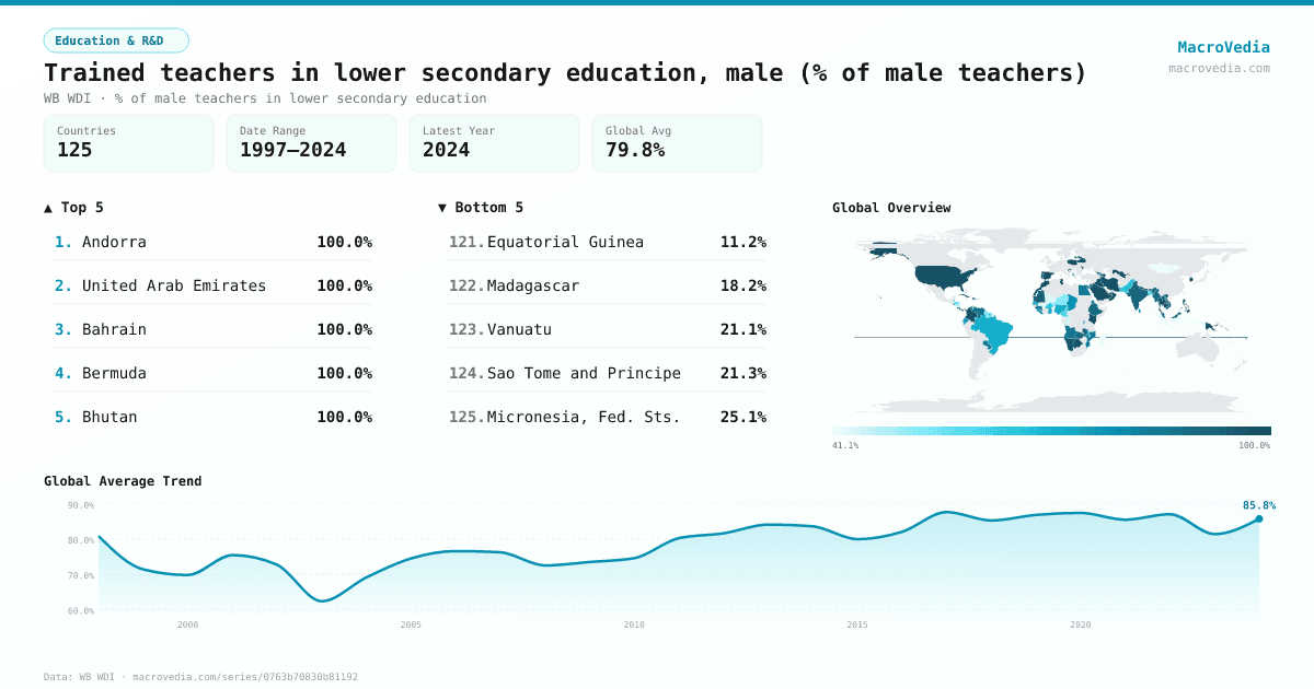 Education & R&DWB WDIwb_wdi:SE.SEC.TCAQ.LO.MA.ZS•% of male teachers in lower secondary education•1997 → 2024•125 countries