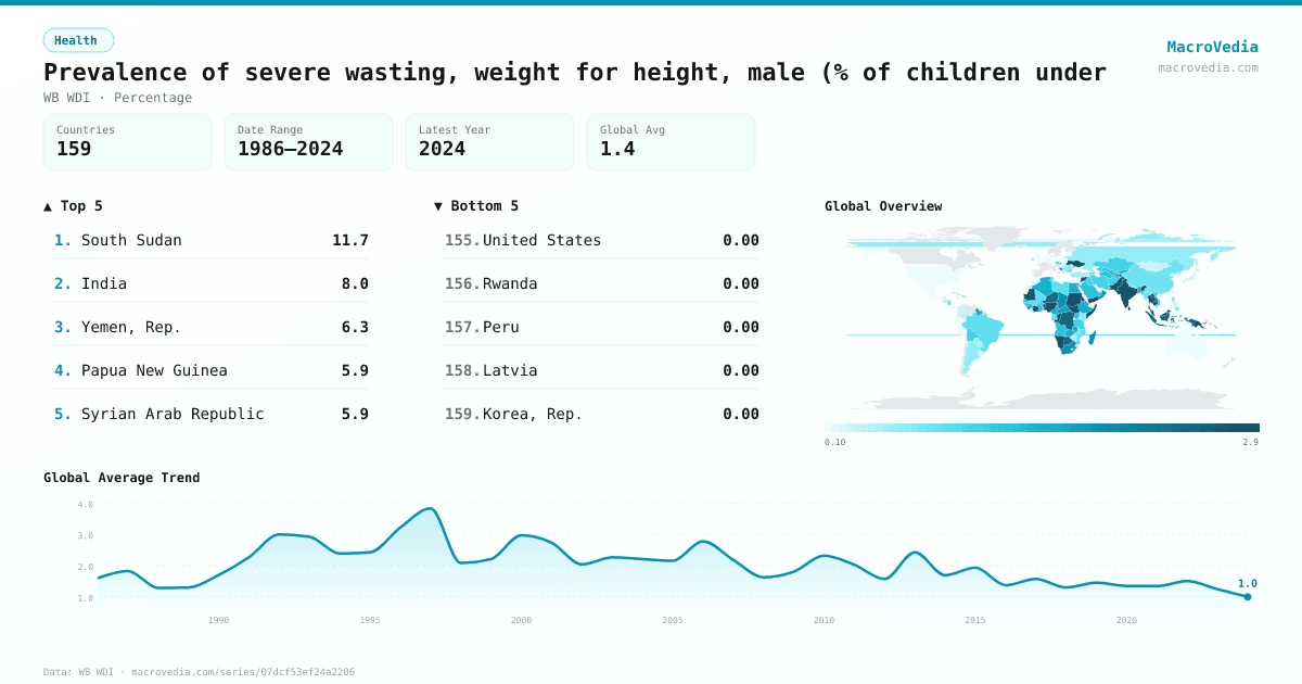 Prevalence of severe wasting, weight for height, male (% of children under by country