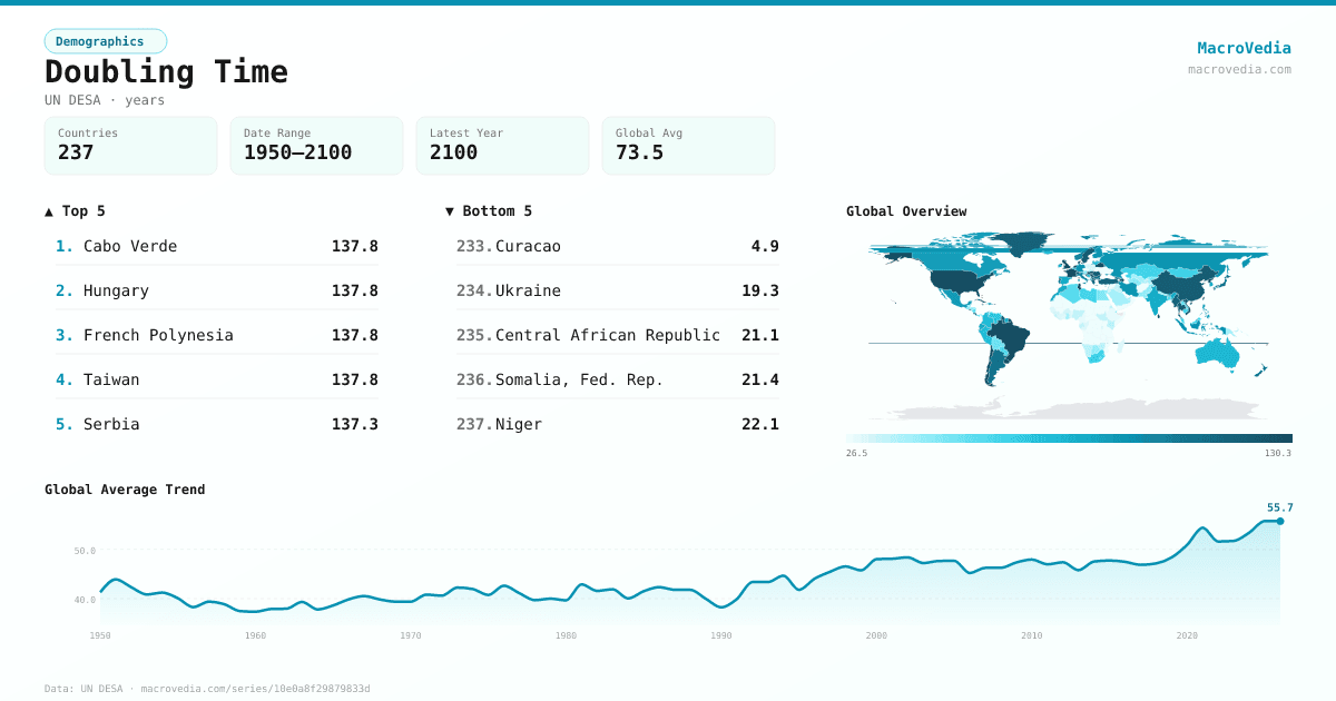 DemographicsUN DESAun_desa_pop:DoublingTime•years•1950 → 2026•225 countries