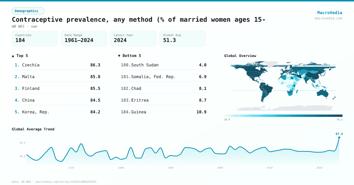 Contraceptive prevalence, any method (% of married women ages 15- by country