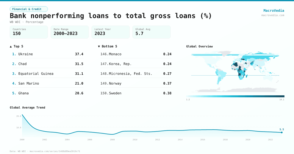 Financial & CreditWB WDIwb_wdi:FB.AST.NPER.ZS•Percentage•2000 → 2023•150 countries