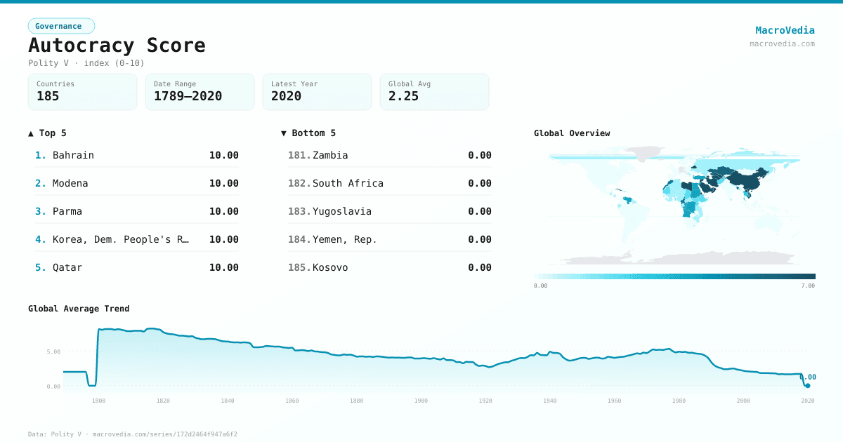 GovernancePolity Vpolity:autoc•index (0-10)•1789 → 2020•161 countries