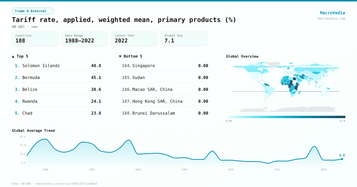 Trade & ExternalWB WDIwb_wdi:TM.TAX.TCOM.WM.AR.ZS•nan•1988 → 2022•188 countries