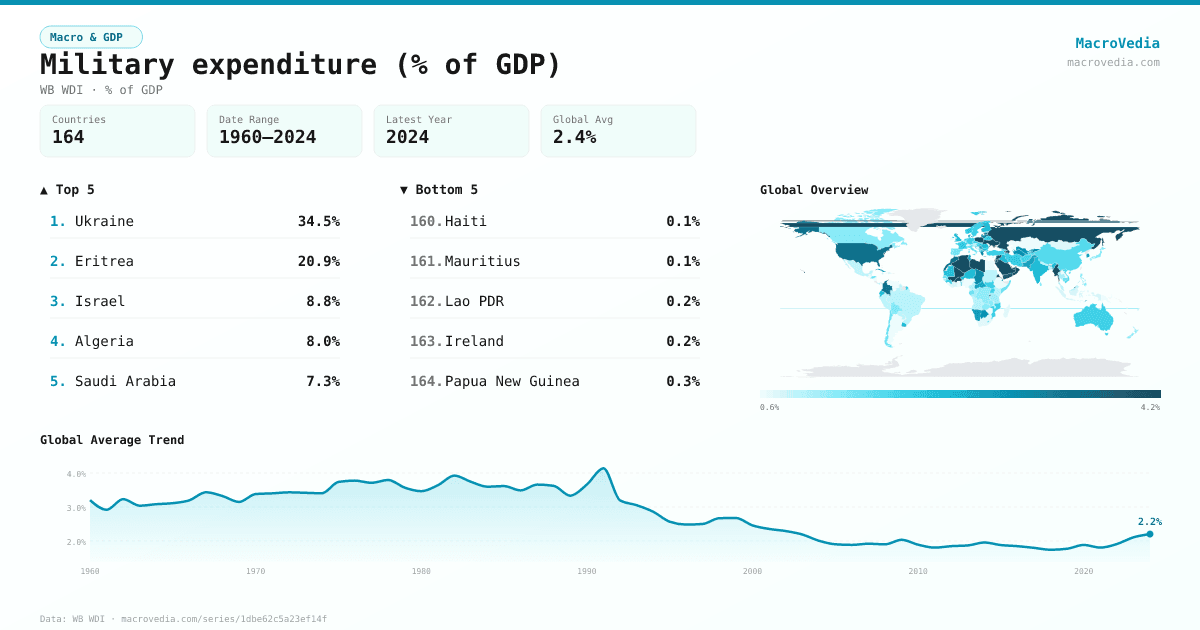 Macro & GDPWB WDIwb_wdi:MS.MIL.XPND.GD.ZS•% of GDP•1960 → 2024•164 countries