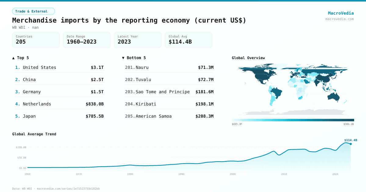 Trade & ExternalWB WDIwb_wdi:TM.VAL.MRCH.WL.CD•nan•1960 → 2023•205 countries