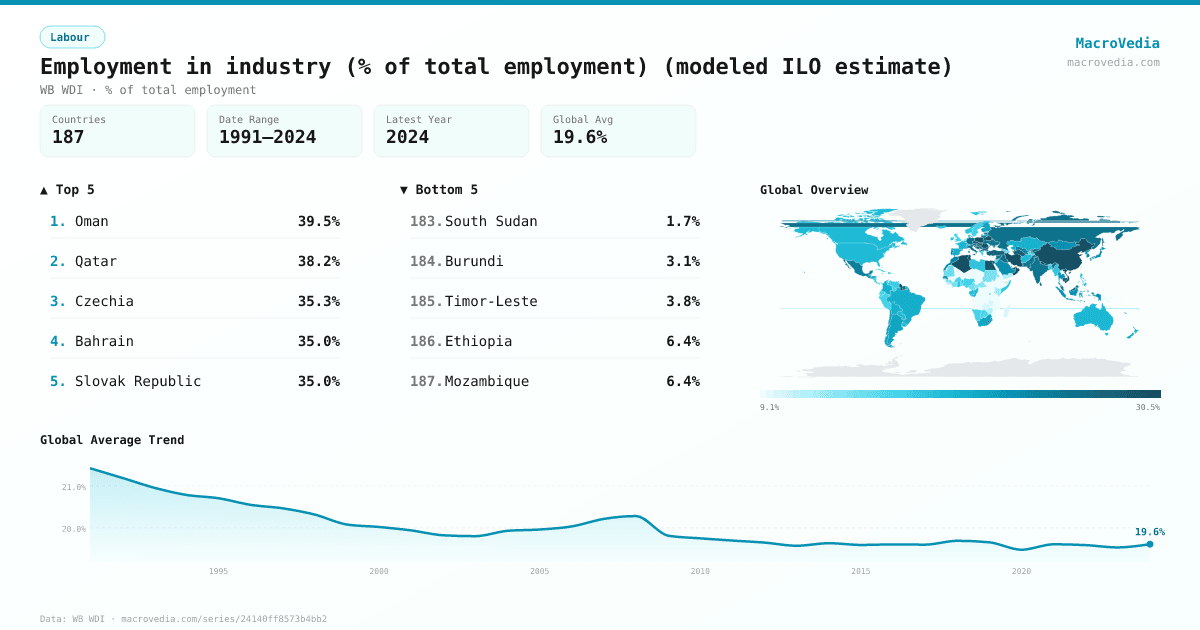 LabourWB WDIwb_wdi:SL.IND.EMPL.ZS•% of total employment•1991 → 2024•187 countries