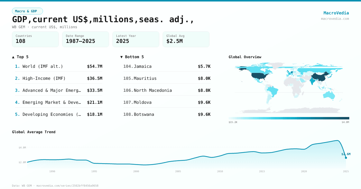 Macro & GDPWB GEMwb_gem:NYGDPMKTPSACD•current US$, millions•1987 → 2025•93 countries