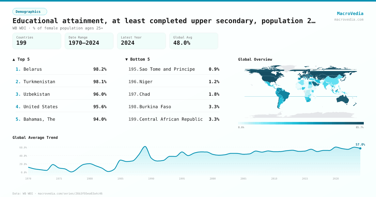 DemographicsWB WDIwb_wdi:SE.SEC.CUAT.UP.FE.ZS•% of female population ages 25+•1970 → 2024•199 countries