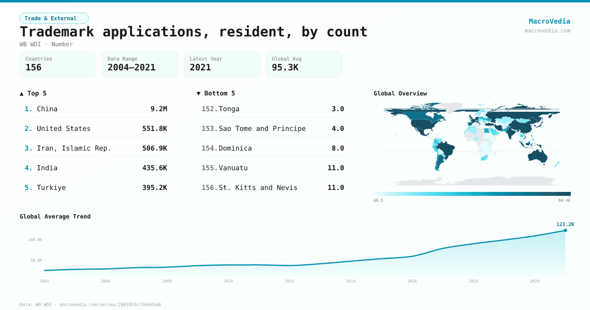 Trade & ExternalWB WDIwb_wdi:IP.TMK.RSCT•Number•2004 → 2021•156 countries