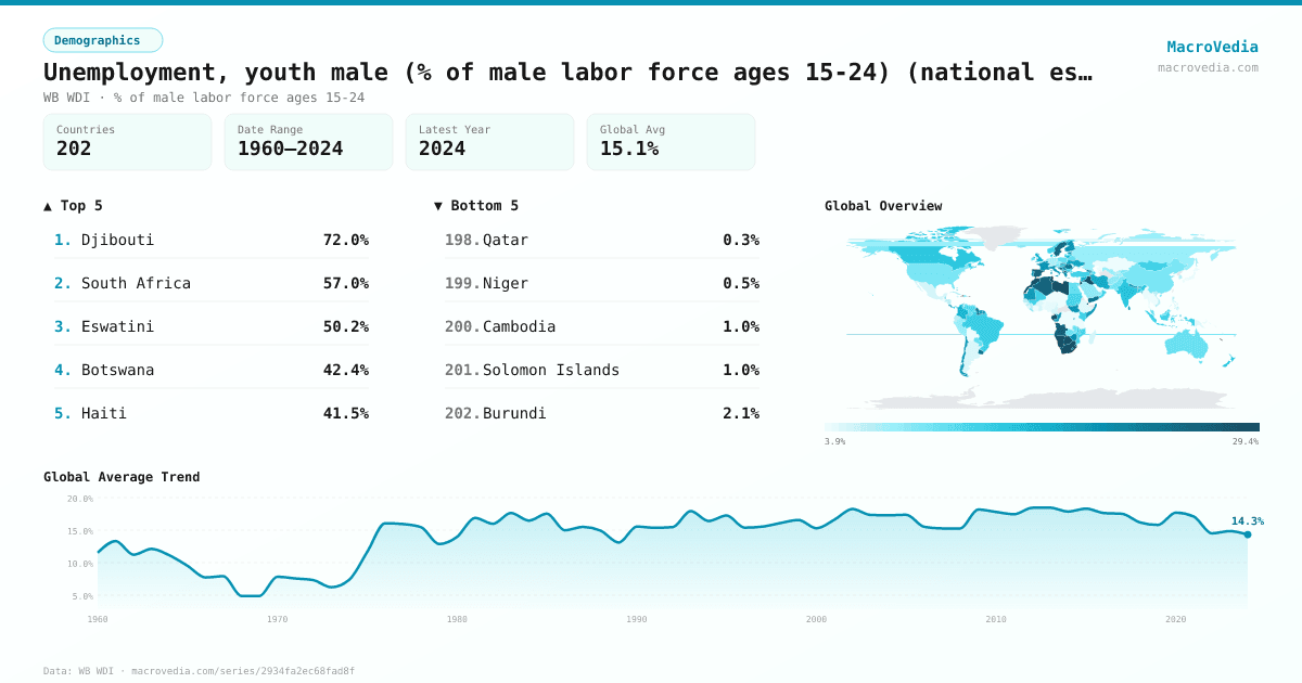 DemographicsWB WDIwb_wdi:SL.UEM.1524.MA.NE.ZS•% of male labor force ages 15-24•1960 → 2024•202 countries