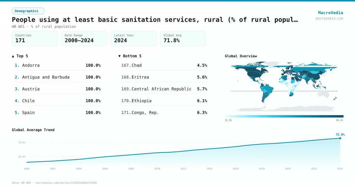 DemographicsWB WDIwb_wdi:SH.STA.BASS.RU.ZS•% of rural population•2000 → 2024•171 countries