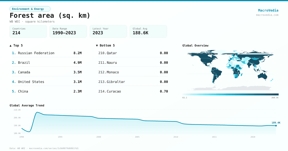 Environment & EnergyWB WDIwb_wdi:AG.LND.FRST.K2•square kilometers•1990 → 2023•214 countries