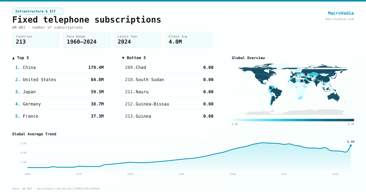 Infrastructure & ICTWB WDIwb_wdi:IT.MLT.MAIN•number of subscriptions•1960 → 2024•213 countries