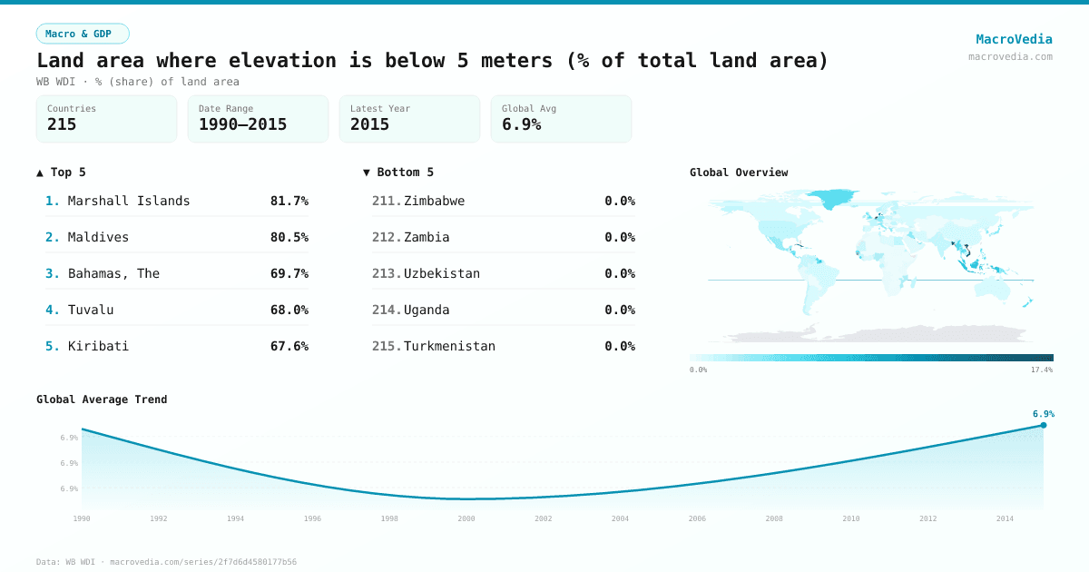 Macro & GDPWB WDIwb_wdi:AG.LND.EL5M.ZS•% (share) of land area•1990 → 2015•215 countries