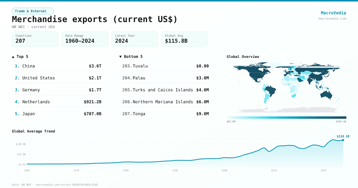 Trade & ExternalWB WDIwb_wdi:TX.VAL.MRCH.CD.WT•current US$•1960 → 2024•207 countries