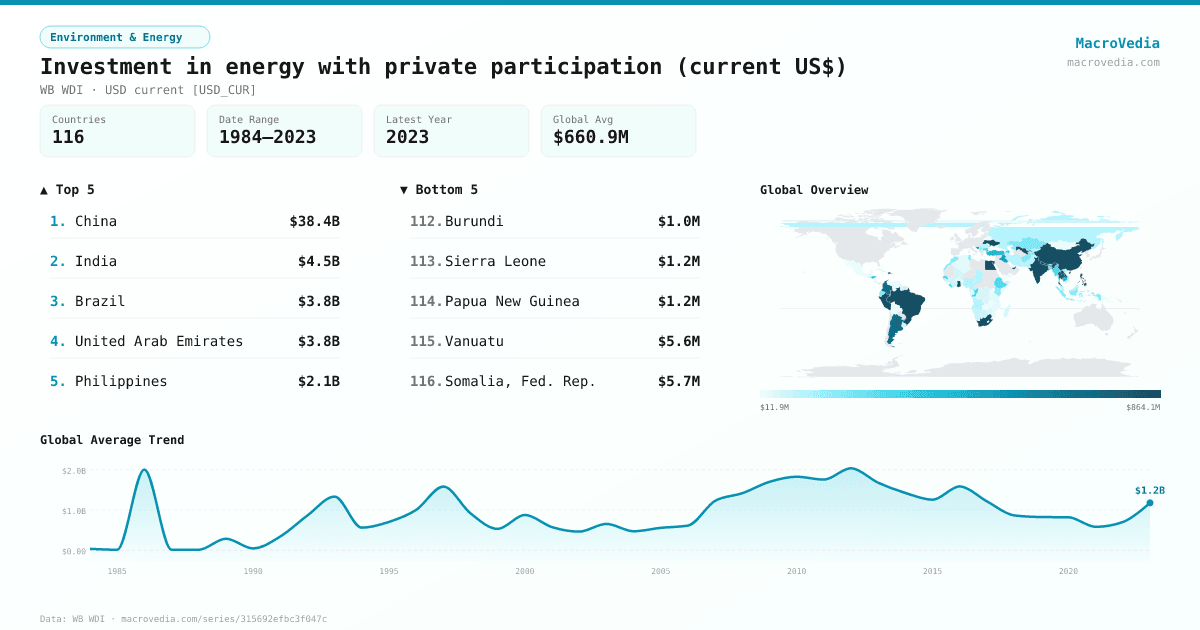 Environment & EnergyWB WDIwb_wdi:IE.PPI.ENGY.CD•USD current [USD_CUR]•1984 → 2023•116 countries