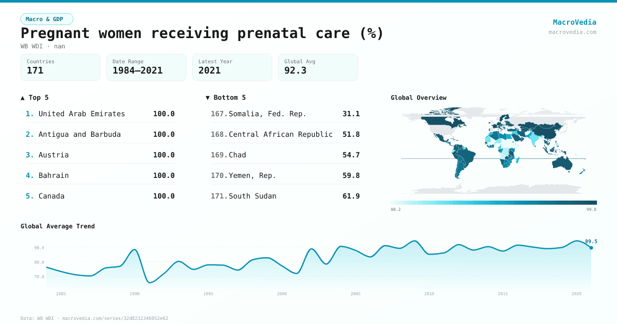 Pregnant women receiving prenatal care (%) by country