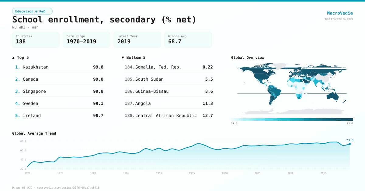 Education & R&DWB WDIwb_wdi:SE.SEC.NENR•nan•1970 → 2019•188 countries