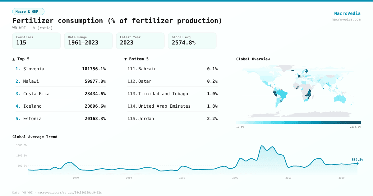 Macro & GDPWB WDIwb_wdi:AG.CON.FERT.PT.ZS•% (ratio)•1961 → 2023•115 countries