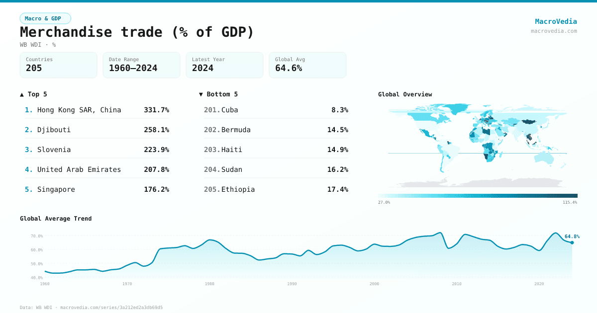 Merchandise trade (% of GDP) by country