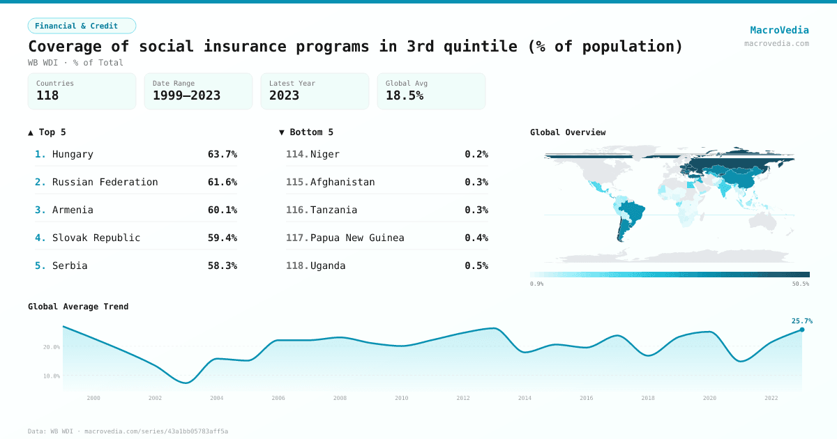 Coverage of social insurance programs in 3rd quintile (% of population) by country