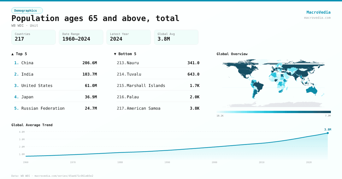 DemographicsWB WDIwb_wdi:SP.POP.65UP.TO•Unit•1960 → 2024•217 countries