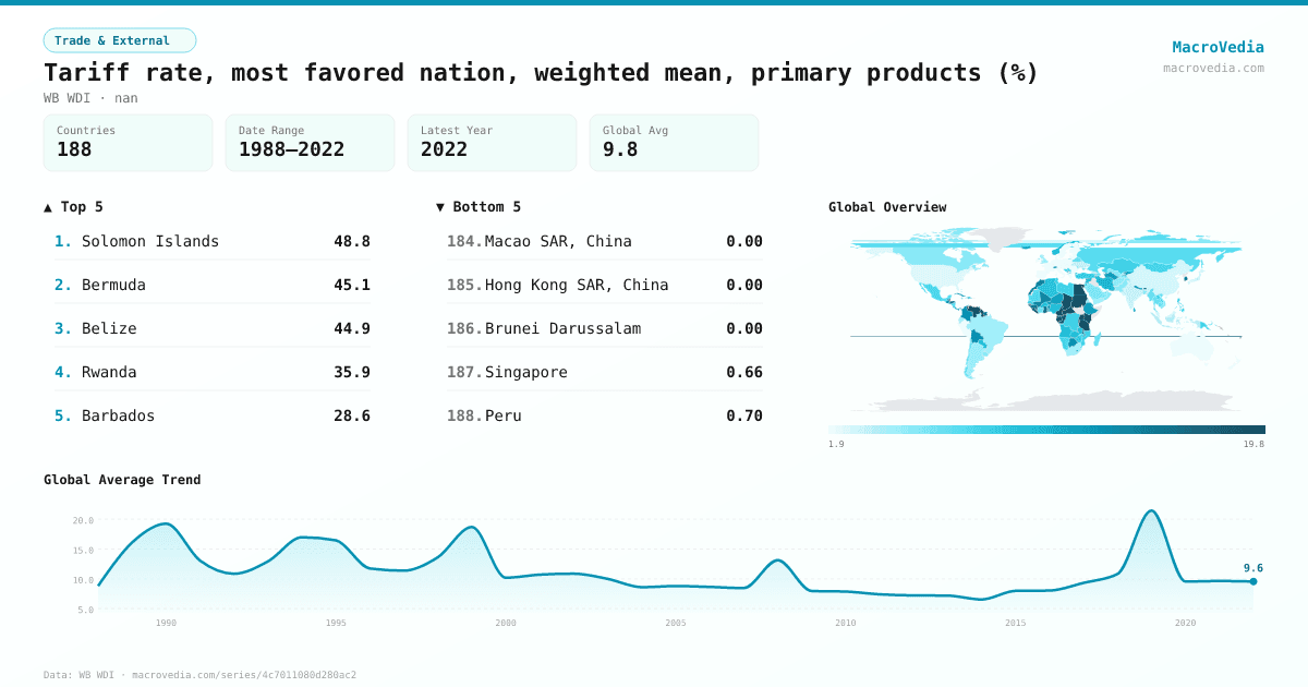 Trade & ExternalWB WDIwb_wdi:TM.TAX.TCOM.WM.FN.ZS•nan•1988 → 2022•188 countries