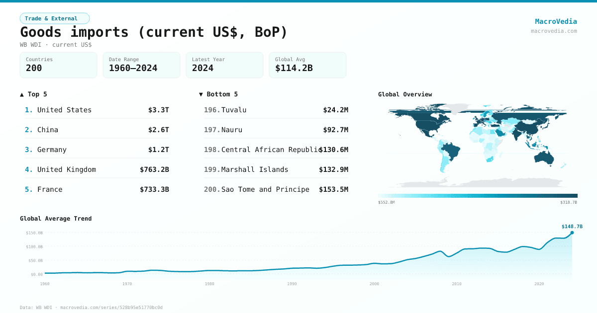 Trade & ExternalWB WDIwb_wdi:BM.GSR.MRCH.CD•current US$•1960 → 2024•200 countries