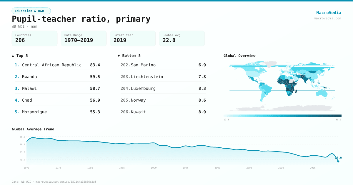 Education & R&DWB WDIwb_wdi:SE.PRM.ENRL.TC.ZS•nan•1970 → 2019•206 countries