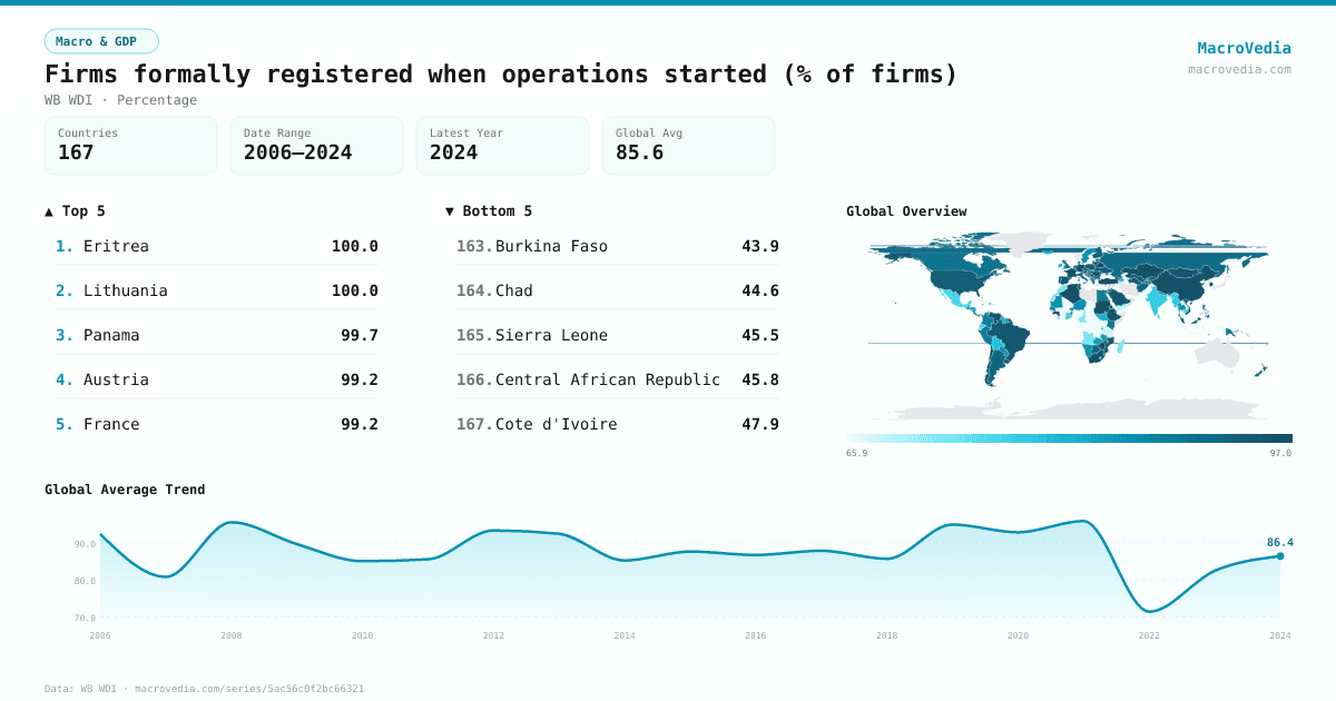 Macro & GDPWB WDIwb_wdi:IC.FRM.FREG.ZS•Percentage•2006 → 2024•167 countries