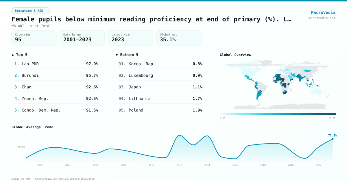 Education & R&DWB WDIwb_wdi:SE.LPV.PRIM.LD.FE•% of Total•2001 → 2023•95 countries