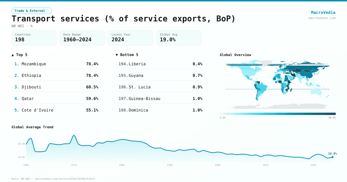 Trade & ExternalWB WDIwb_wdi:BX.GSR.TRAN.ZS•%•1960 → 2024•198 countries