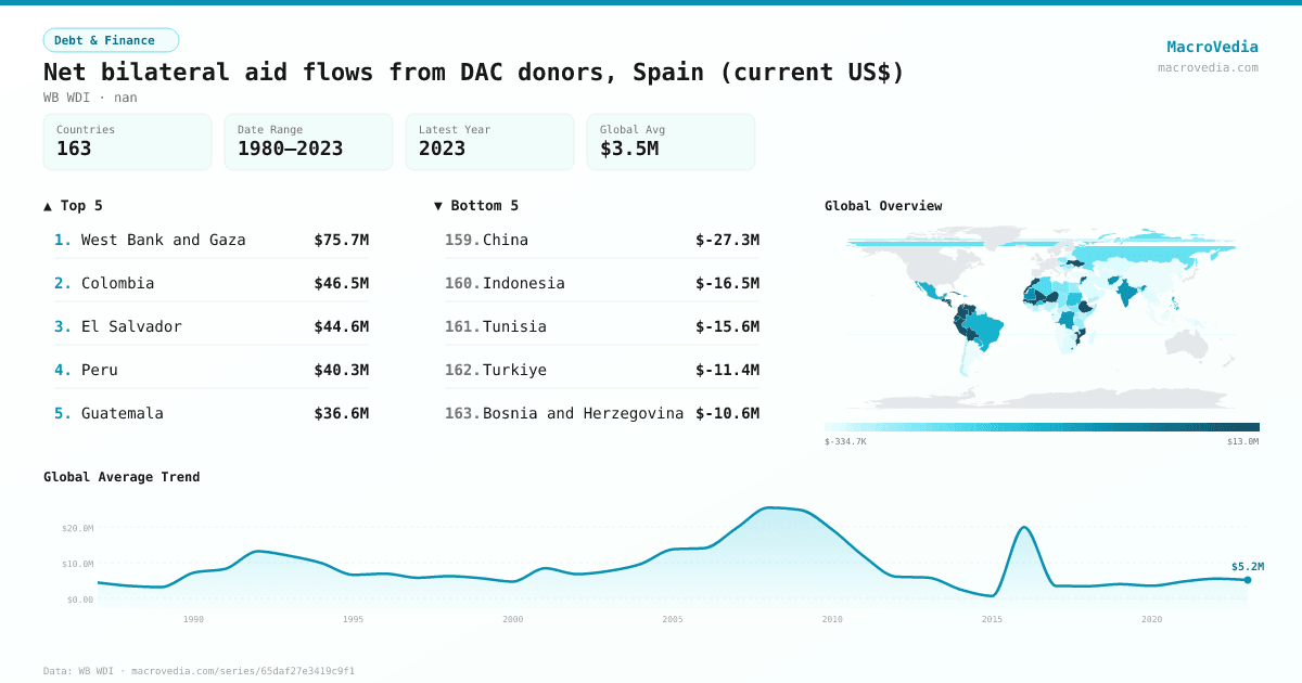 Net bilateral aid flows from DAC donors, Spain (current US$) by country