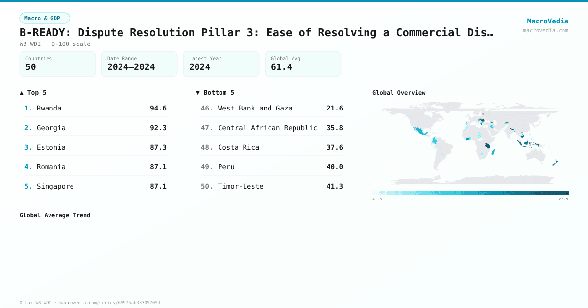 B-READY: Dispute Resolution Pillar 3: Ease of Resolving a Commercial Dispute by country