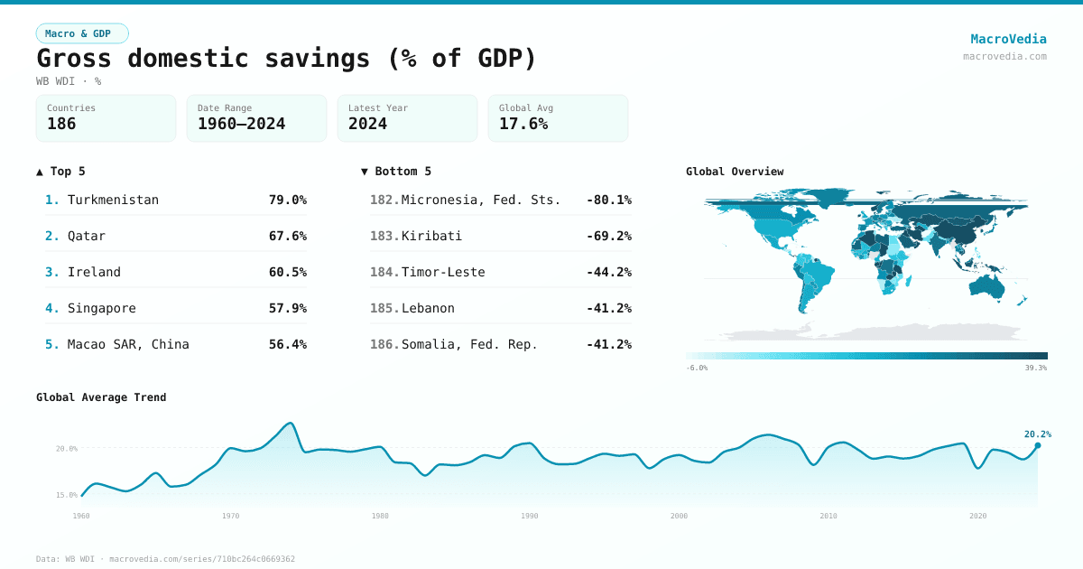 Macro & GDPWB WDIwb_wdi:NY.GDS.TOTL.ZS•%•1960 → 2024•186 countries