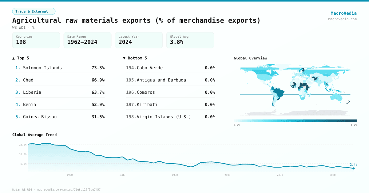 Trade & ExternalWB WDIwb_wdi:TX.VAL.AGRI.ZS.UN•%•1962 → 2024•198 countries