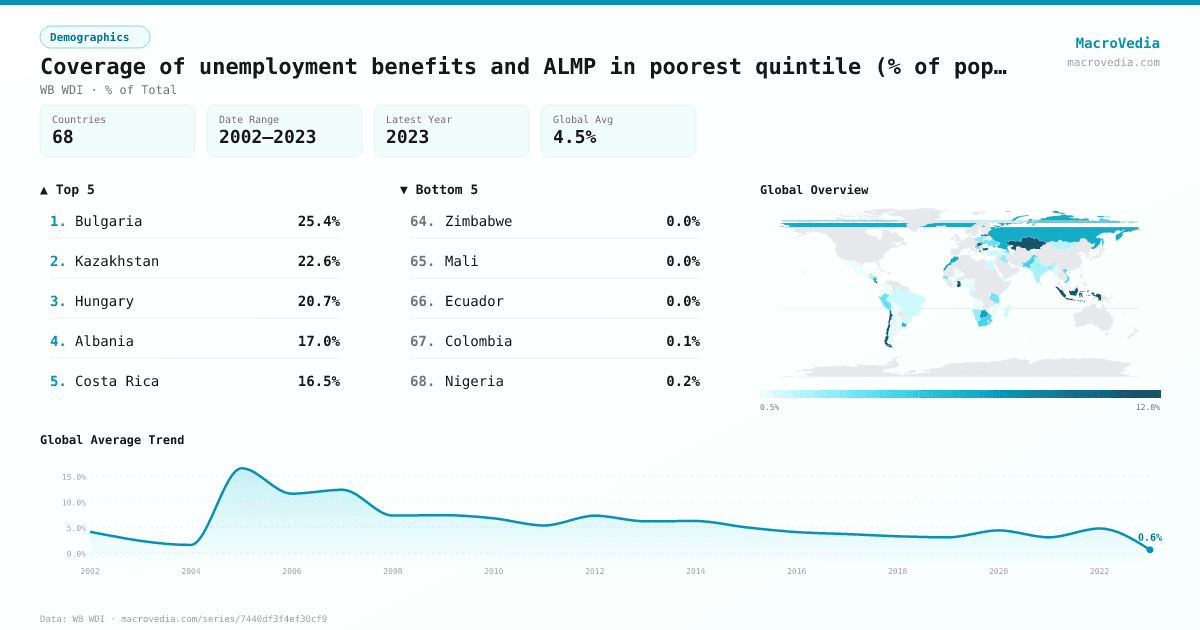 Coverage of unemployment benefits and ALMP in poorest quintile (% of population)
