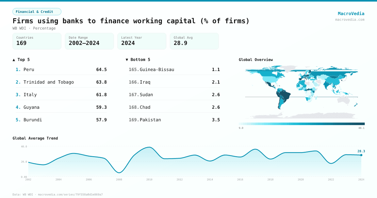Financial & CreditWB WDIwb_wdi:IC.FRM.BKWC.ZS•Percentage•2002 → 2024•169 countries