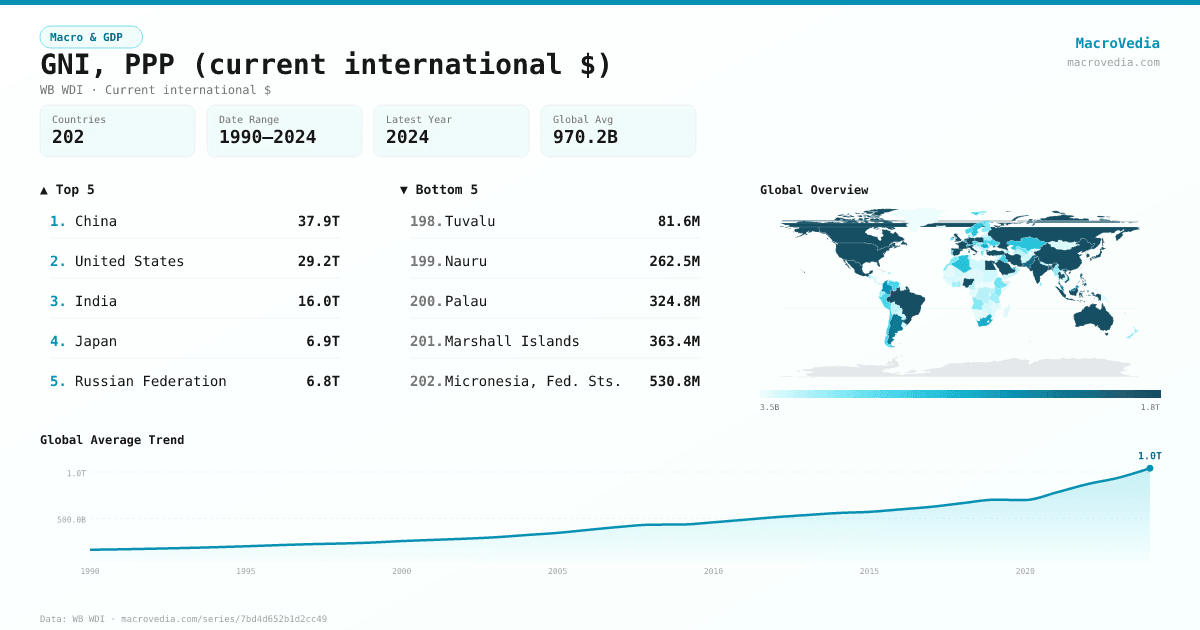 Macro & GDPWB WDIwb_wdi:NY.GNP.MKTP.PP.CD•Current international $•1990 → 2024•202 countries