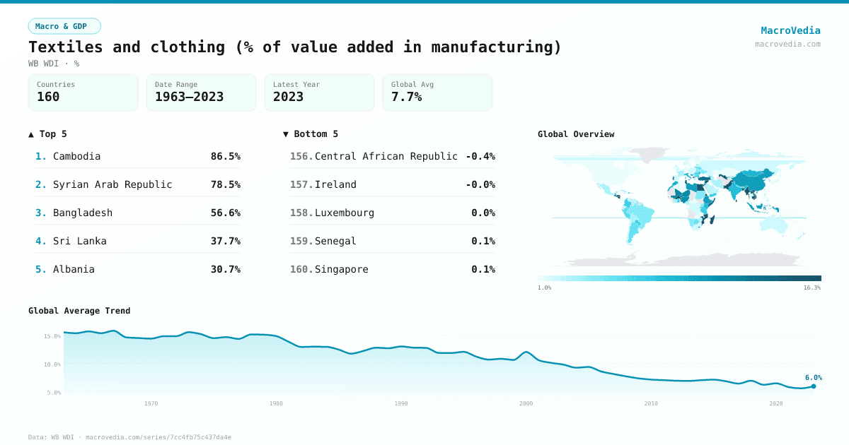 Macro & GDPWB WDIwb_wdi:NV.MNF.TXTL.ZS.UN•%•1963 → 2023•160 countries