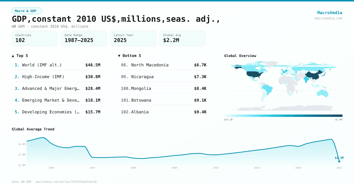 Macro & GDPWB GEMwb_gem:NYGDPMKTPSAKD•constant 2010 US$, millions•1987 → 2025•87 countries