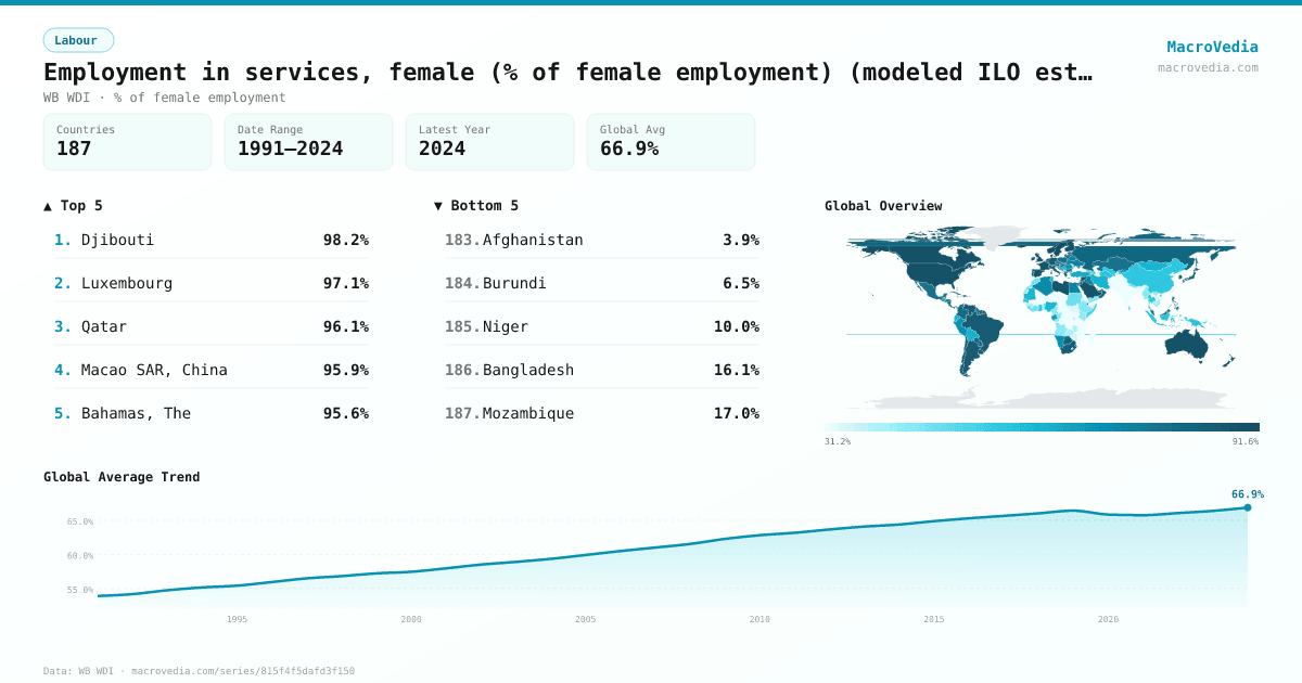 LabourWB WDIwb_wdi:SL.SRV.EMPL.FE.ZS•% of female employment•1991 → 2024•187 countries