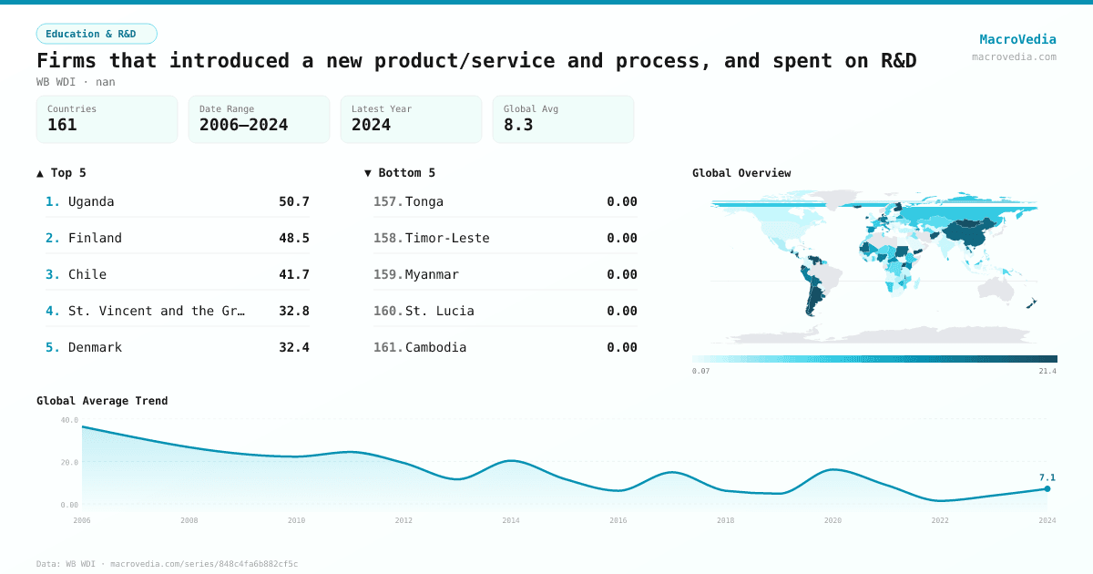 Education & R&DWB WDIwb_wdi:IC.FRM.NPRD.ZS•nan•2006 → 2024•161 countries