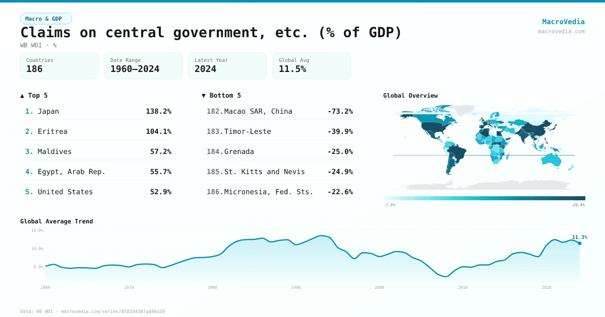 Macro & GDPWB WDIwb_wdi:FS.AST.CGOV.GD.ZS•%•1960 → 2024•186 countries