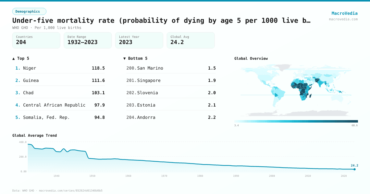 DemographicsWHO GHOwho_gho:MDG_0000000007•Per 1,000 live births•1932 → 2023•198 countries