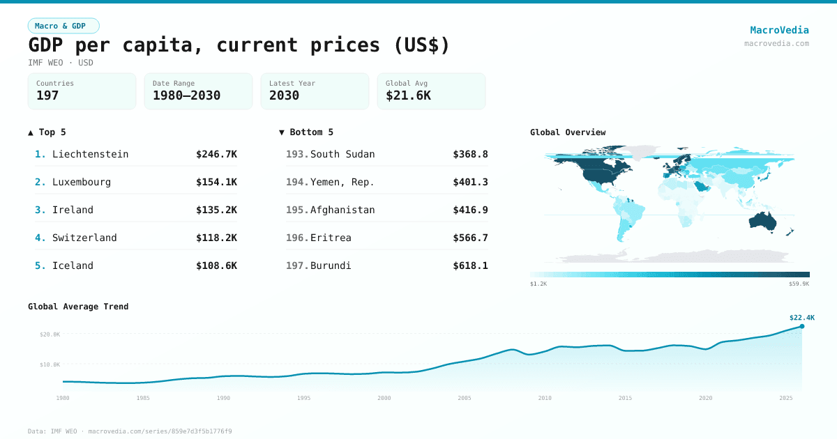 Macro & GDPIMF WEOimf_weo:NGDPDPC•USD•1980 → 2026•194 countries