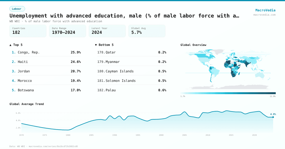 LabourWB WDIwb_wdi:SL.UEM.ADVN.MA.ZS•% of male labor force with advanced education•1970 → 2024•182 countries