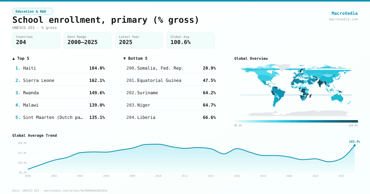 Education & R&DUNESCO UISunesco_uis:SE.PRM.ENRR•% gross•2000 → 2025•208 countries